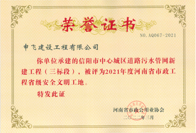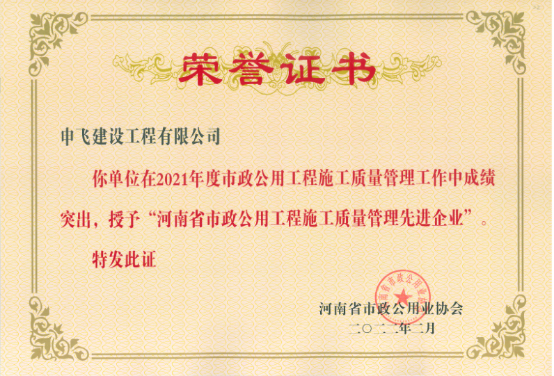 信陽市申飛市政工程有限公司原名信陽市市政工程公司,注冊資本1.1億元。公司目前擁有“市政公用工程總承包一級(jí)、市政設(shè)計(jì)乙級(jí)、房屋建筑總承包三級(jí)、環(huán)保三級(jí)、機(jī)電安裝三級(jí)、裝飾裝修三級(jí)、鋼結(jié)構(gòu)三級(jí)”等多項(xiàng)企業(yè)資質(zhì)。公司下設(shè)設(shè)計(jì)公司、物業(yè)公司、商品砼公司等多個(gè)子公司。業(yè)務(wù)范圍包括市政工程設(shè)施管理,城市道路、橋梁和隧道施工、維護(hù),城市給水、排水設(shè)施施工及維護(hù),城市道路、橋涵測量、設(shè)計(jì),建筑工程,燃?xì)鉄崃Α⒗幚恚A(yù)制構(gòu)件,建筑垃圾運(yùn)輸、處置、加工再利用,園林工程,商品砼的生產(chǎn)與銷售等。